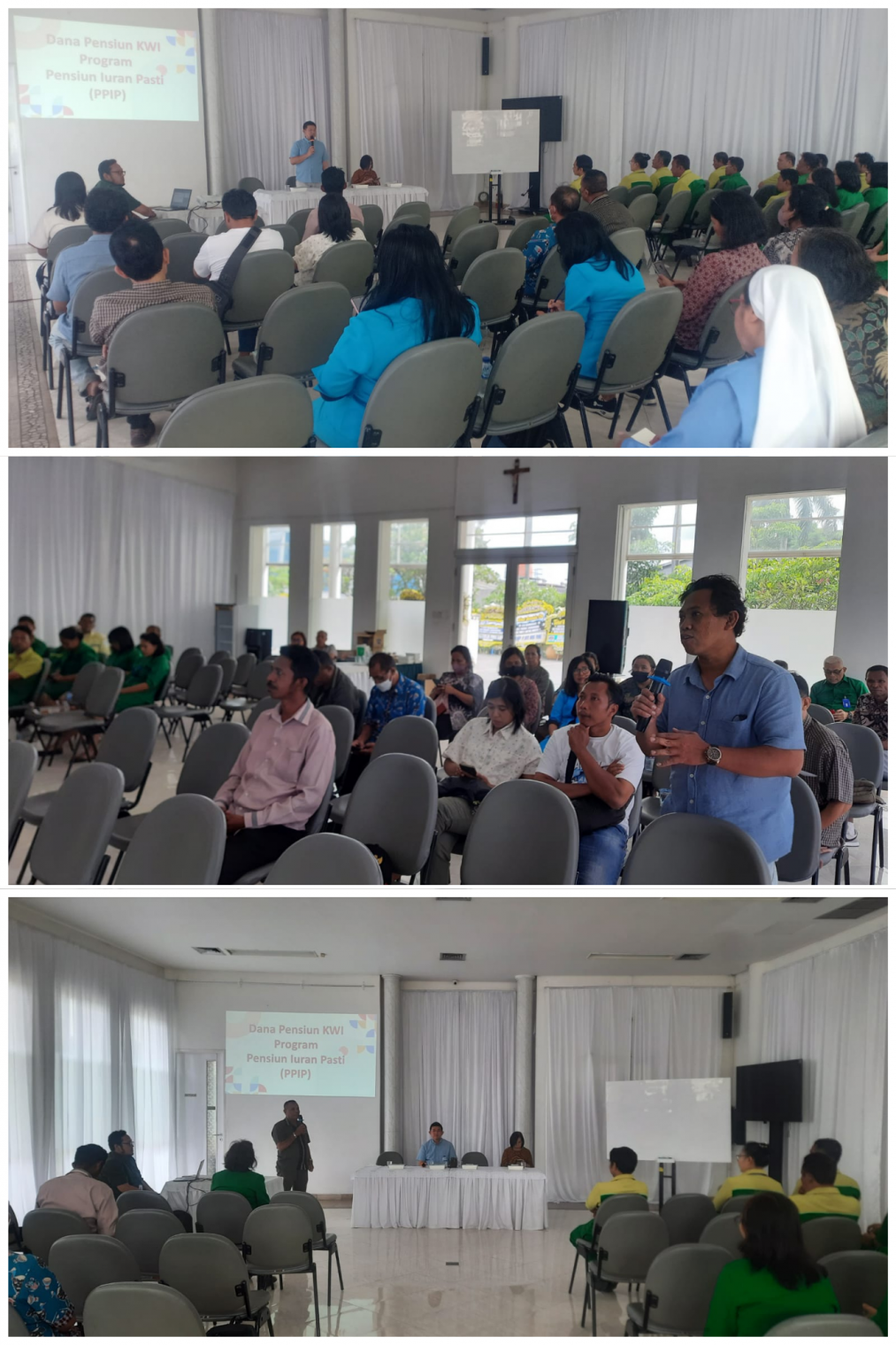 Pada Selasa tanggal 07 Januari 2025, Dana Pensiun Konferensi Waligereja Indonesia bersama tim PPIP melakukan Sosialisasi kepada peserta aktif dan peserta pasif / pensiunan di Wilayah Tangerang, yaitu PT Danita (Oasis Lestari), Yayasan Bintang Timur dan PGDP Gregorius Agung. Dalam sosialisasi ini dipaparkan tentang gambaran umum perubahan Program Pensiun Manfaat Pasti (PPMP) ke Program Pensiun Iuran Pasti (PPIP), sekilas tentang Peraturan Dana Pensiun (PDP) PPIP dan tanya jawab para peserta dengan pengurus Dana Pensiun Konferensi Waligereja Indonesia.
